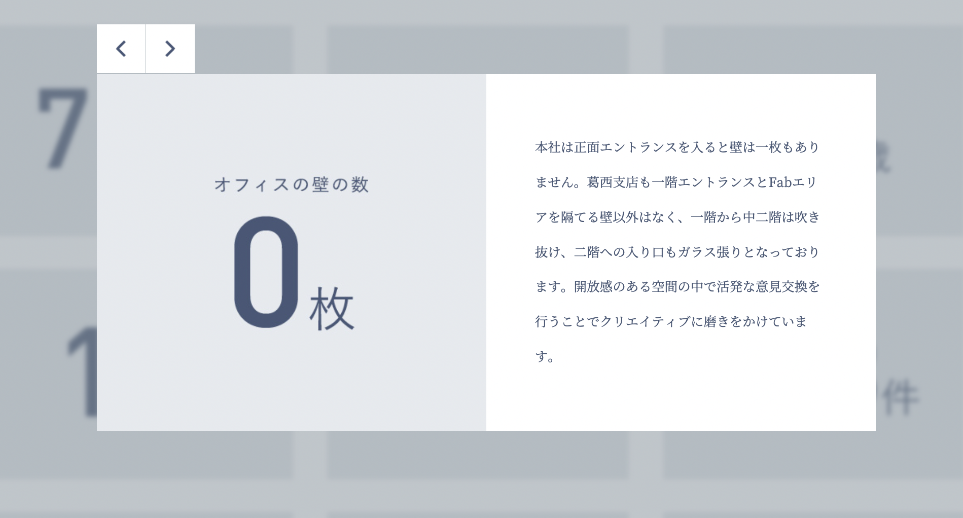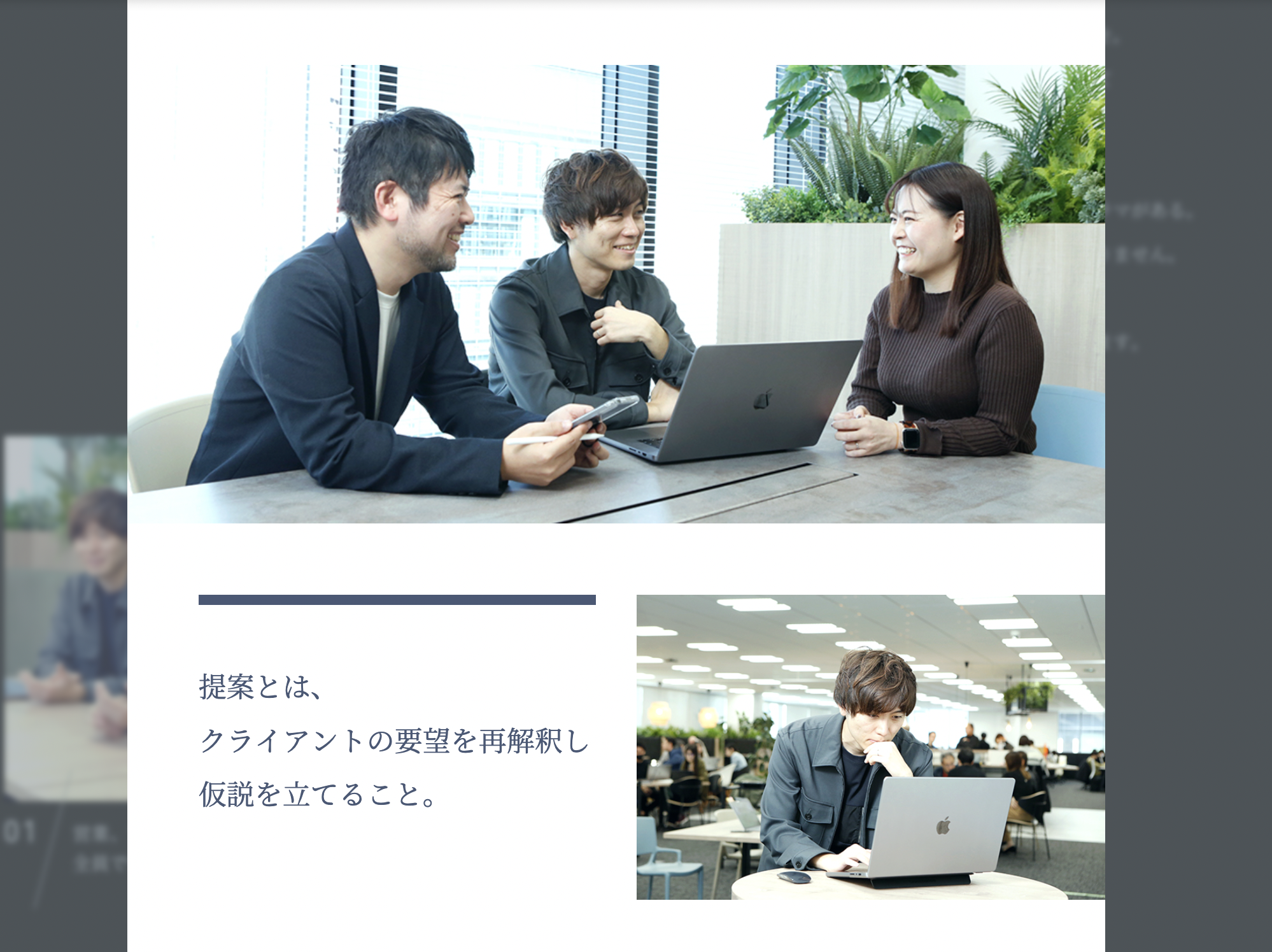 空間デザインの会社だと、施工実績の写真を盛り盛りに使いたくなっちゃう気がするんですけど、それを敢えてコーポレートサイトのほうに全振りしているんですよね。