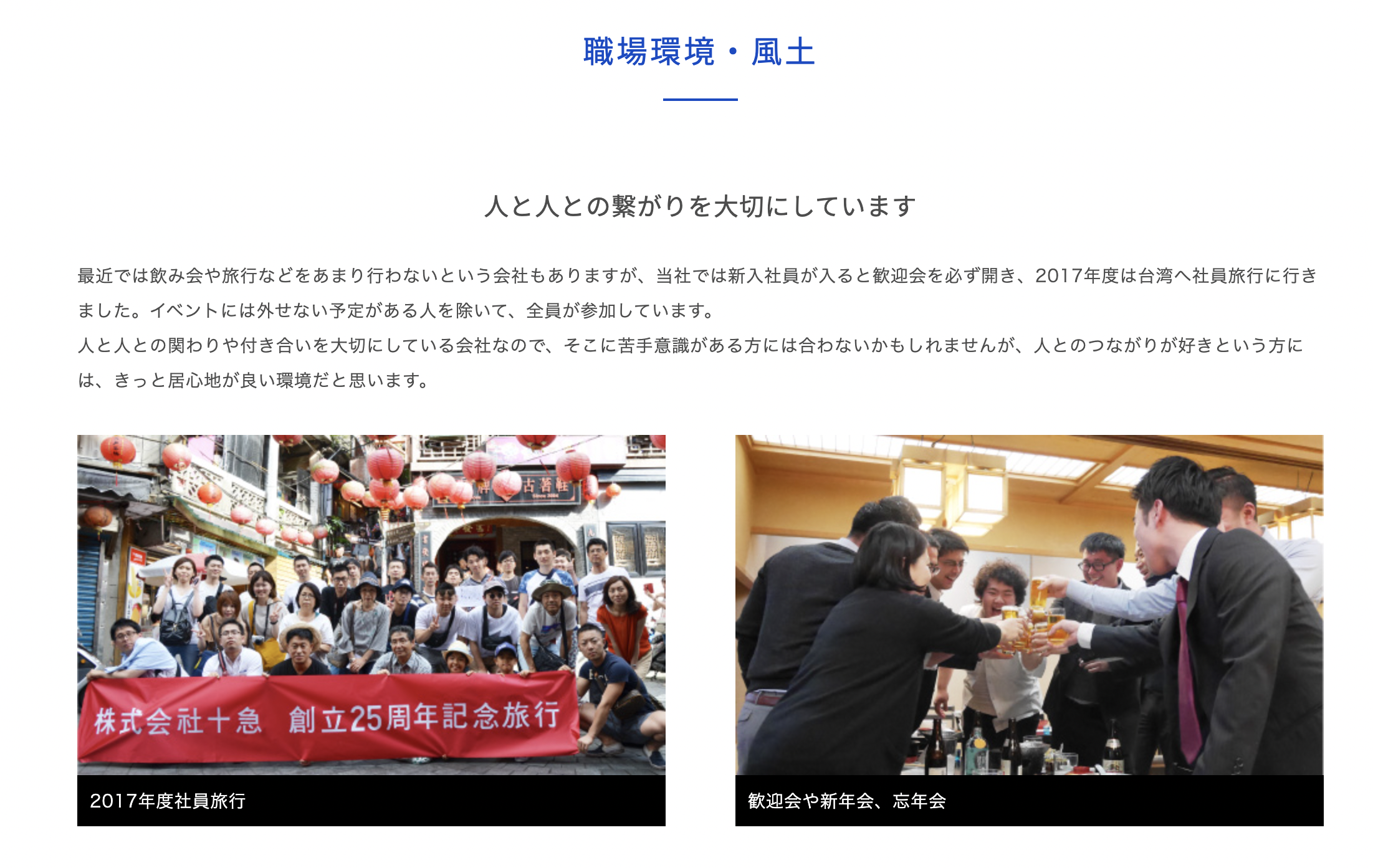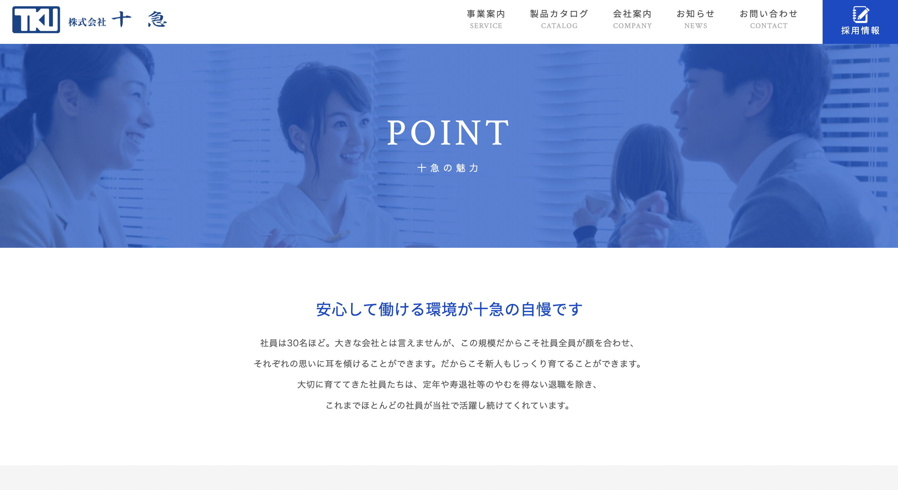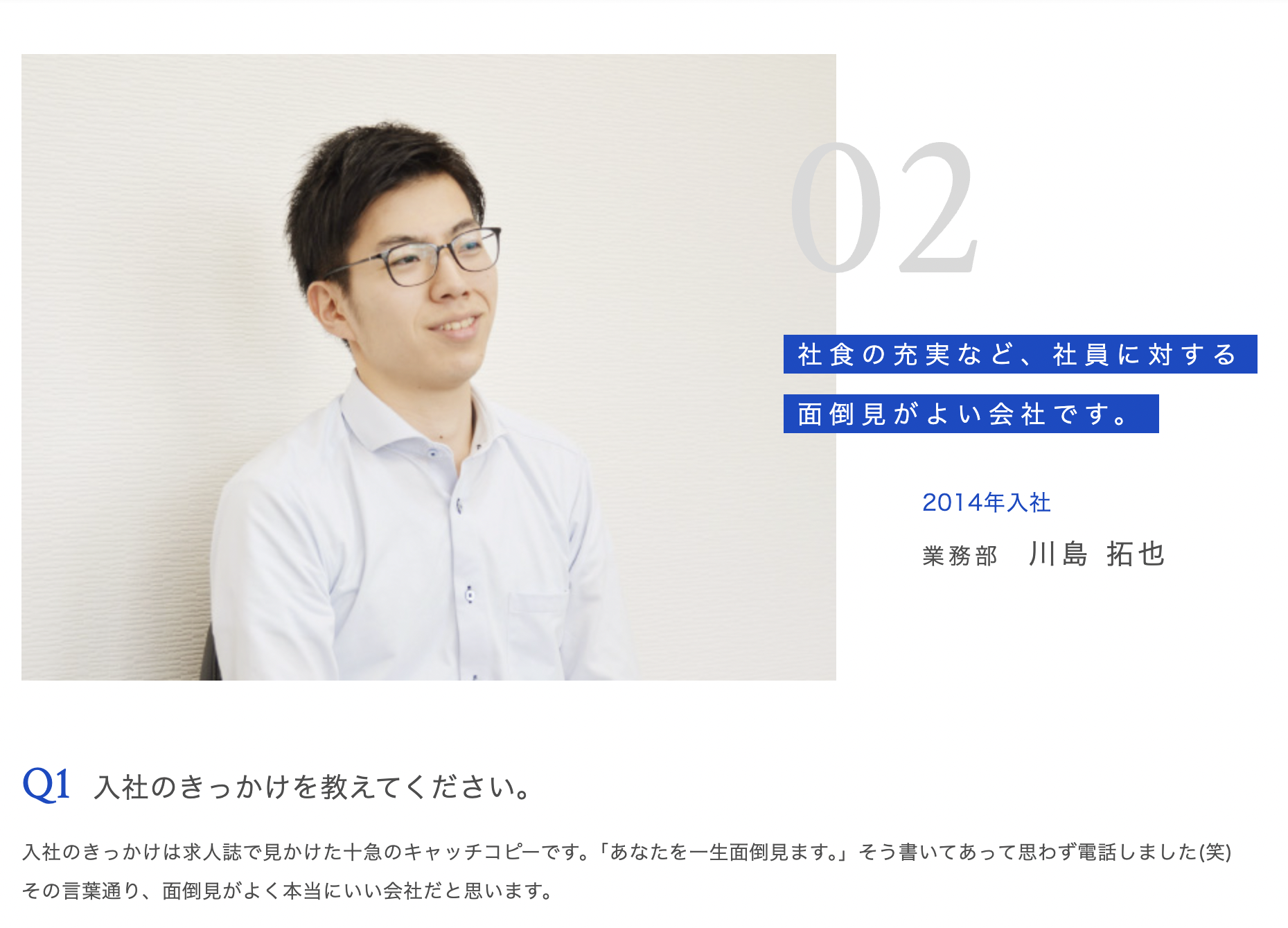 従業員のことを大切にしているんだろうなっていうのが伝わってきます。色味も青で、誠実な感じ。コーポレートカラーなのかな?