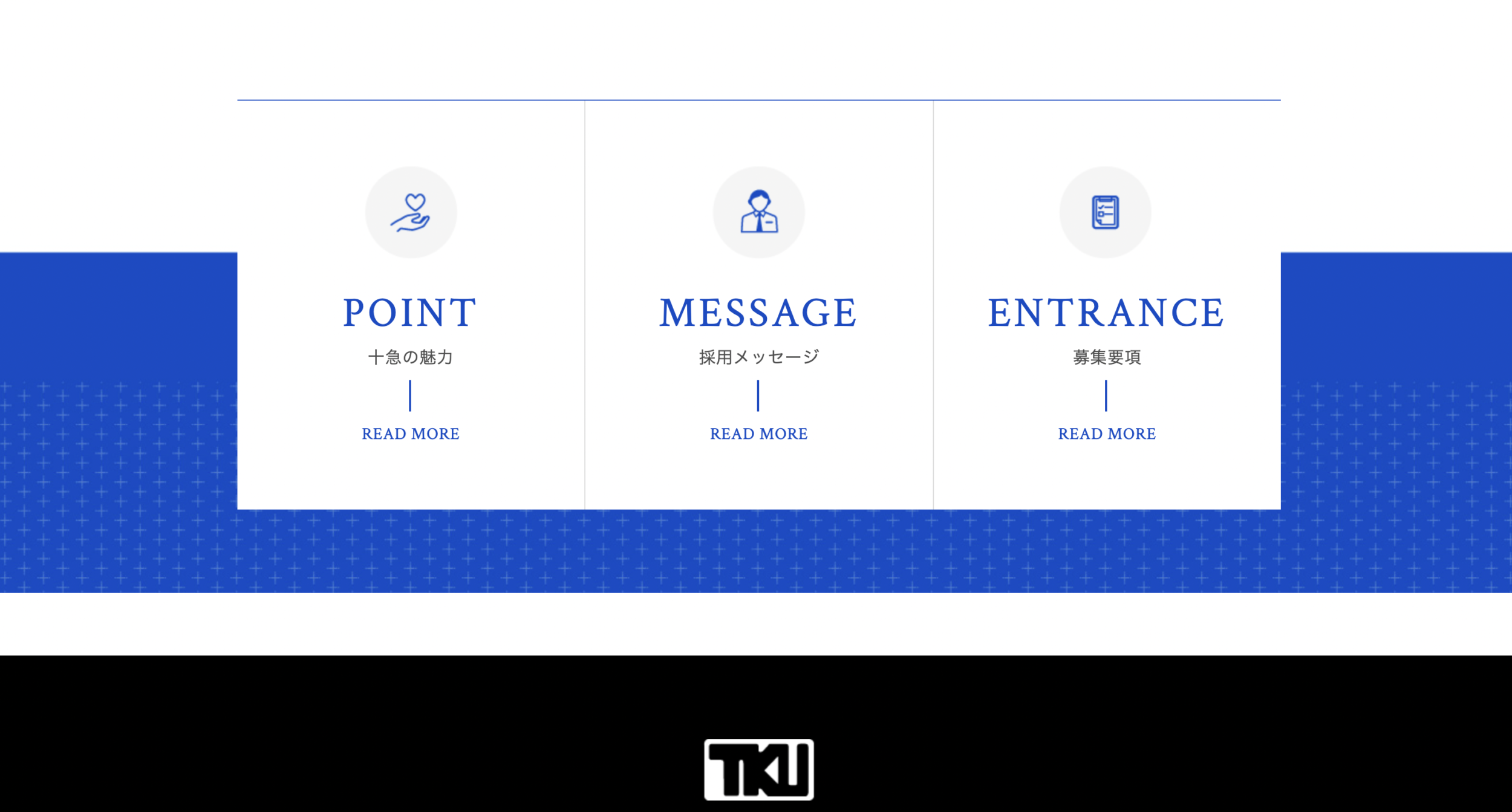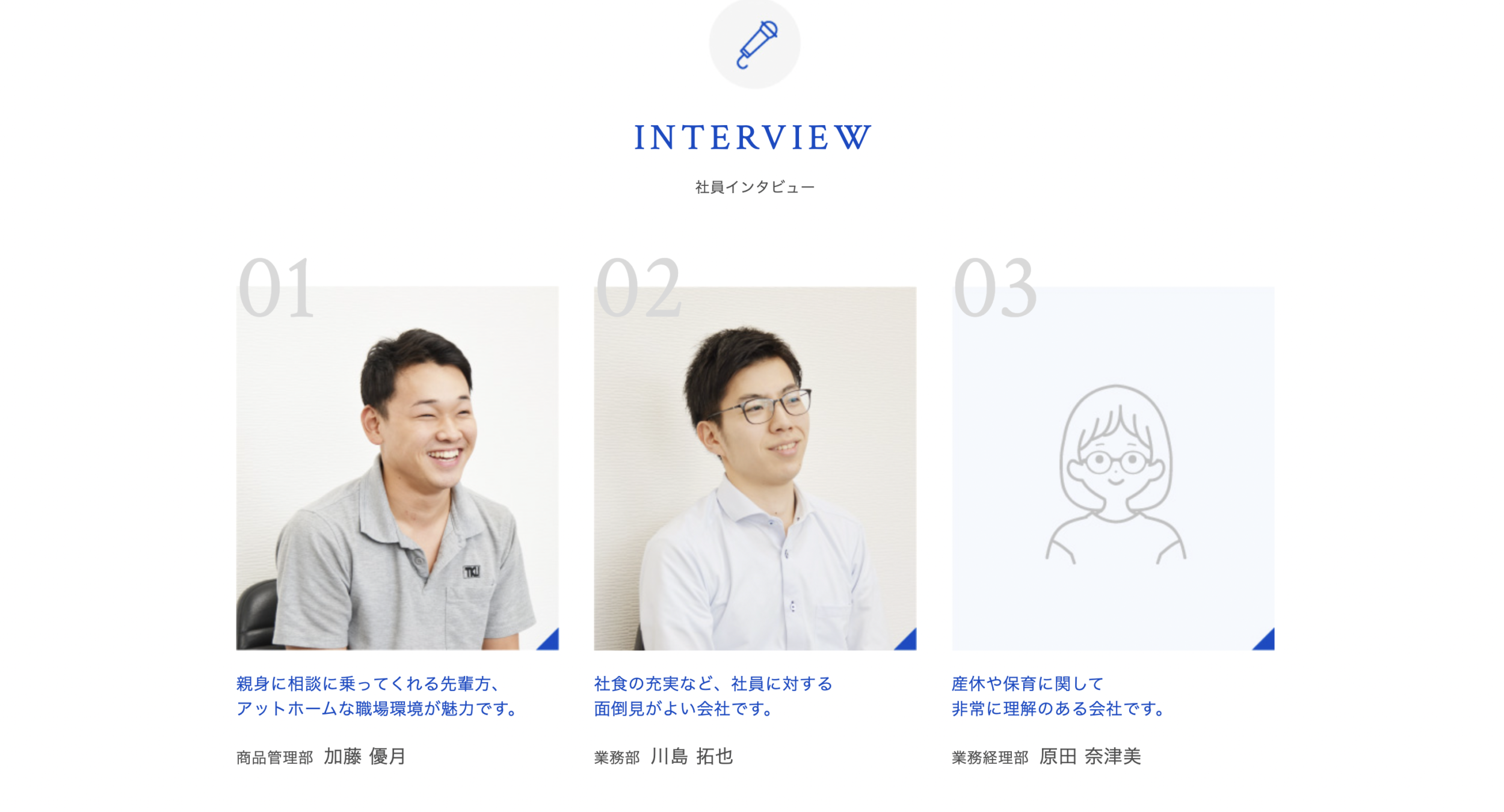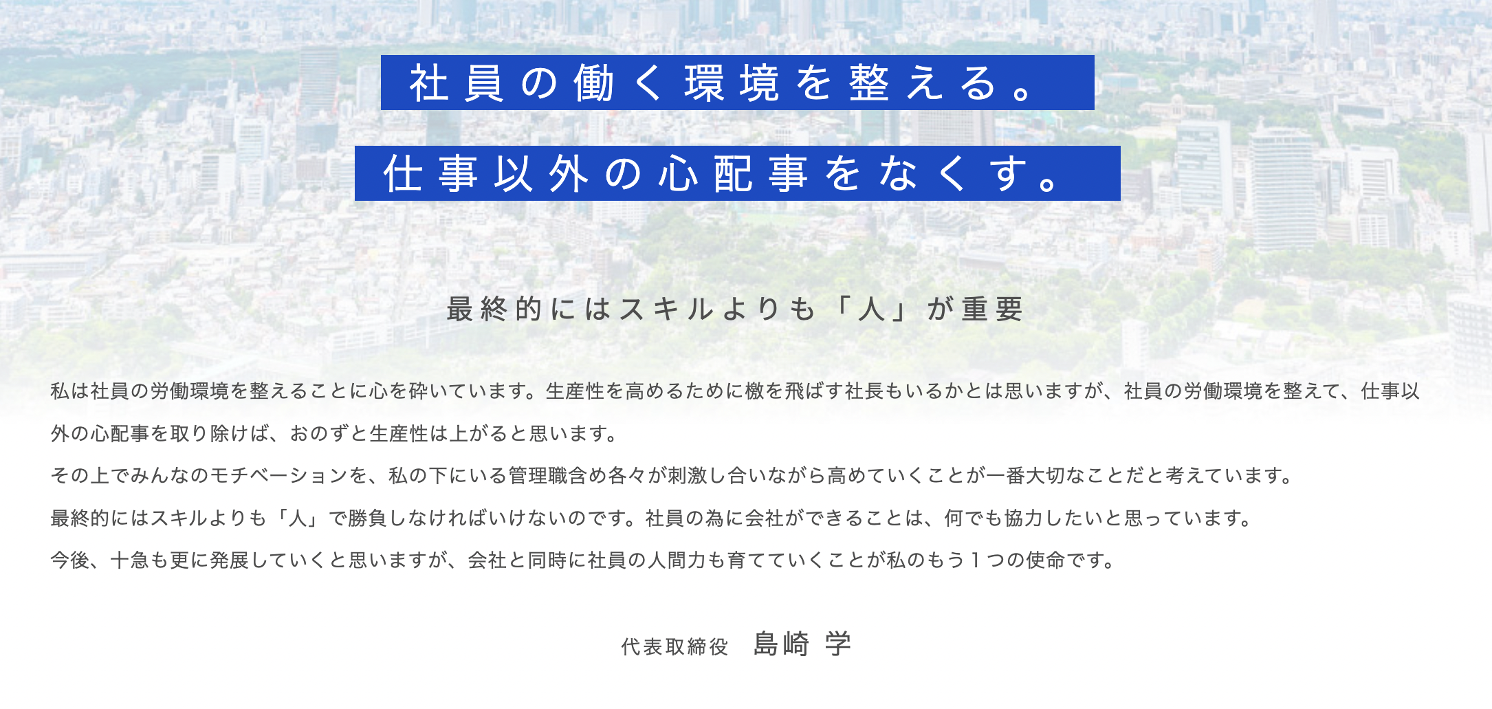従業員のことを大切にしているんだろうなっていうのが伝わってきます。色味も青で、誠実な感じ。コーポレートカラーなのかな?