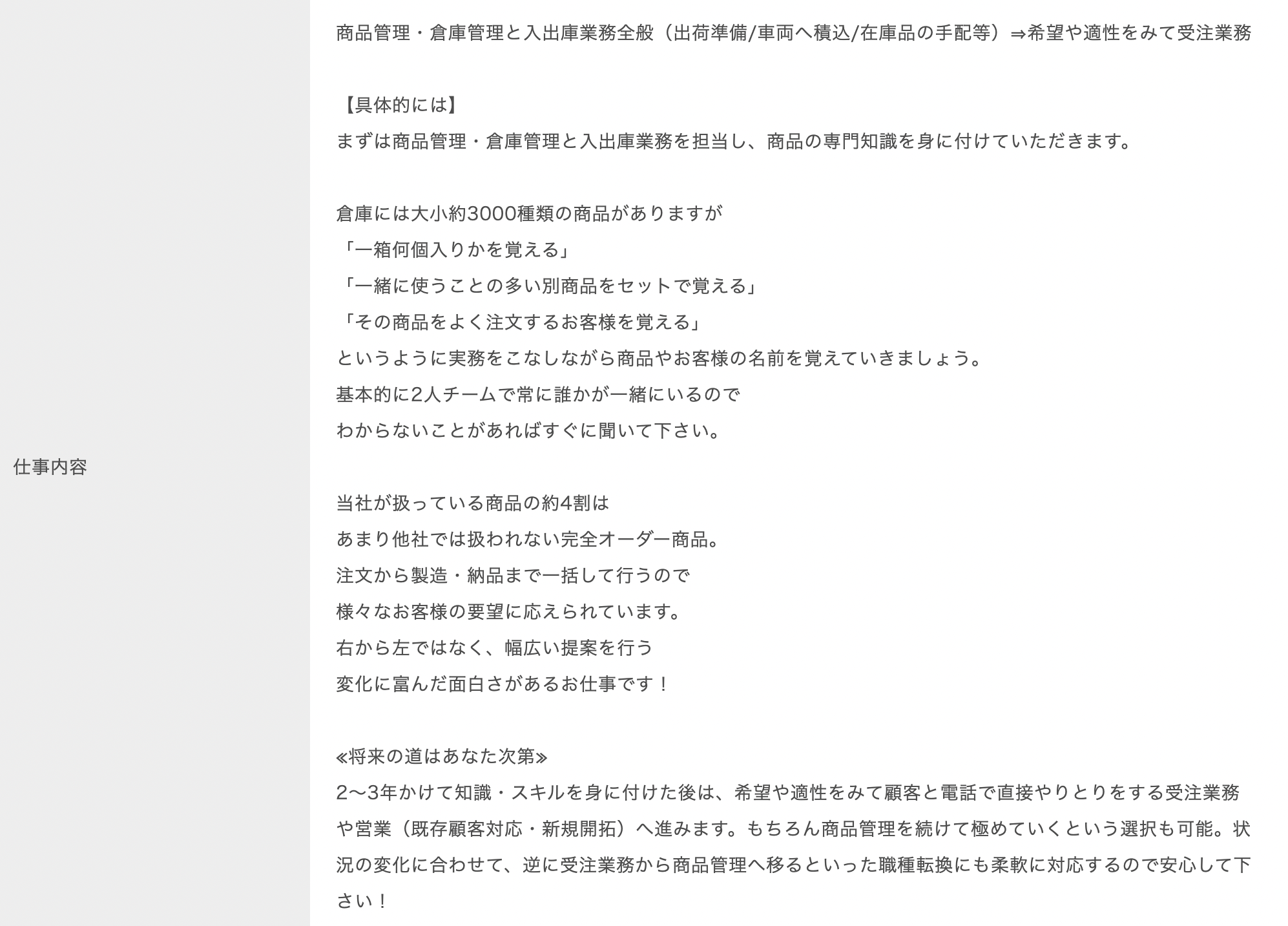 あと、インタビューページを読んだら従業員の方が「ちゃんと社員を大切にしてくれている」と仰っているので、最初のイメージ通りの会社なんだなと思いました。